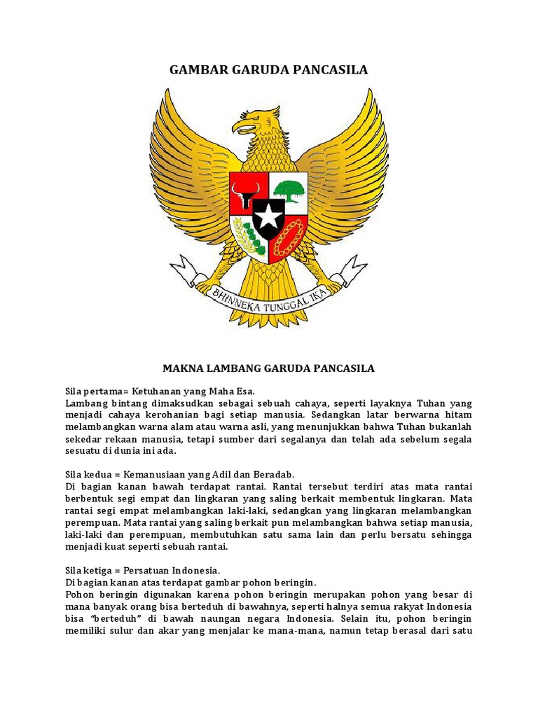 Lagu Garuda Pancasila juga dikenal dengan nama Mars Pancasila dibuat untuk mengenalkan burung Garuda sebagai lambang negara kepada seluruh anak bangsa Indonesia. Pohon beringin merupakan simbol sila ketiga yang berbunyi Persatuan Indonesia. Pada burung garuda.
