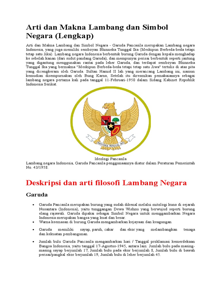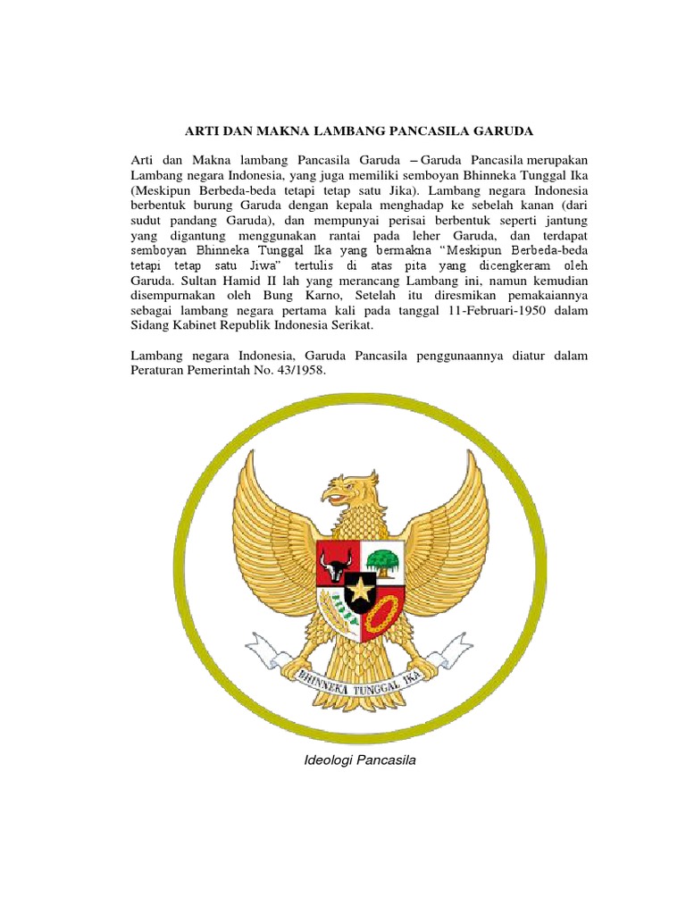 Garuda dipakai sebagai Simbol Negara untuk menggambarkan Negara Indonesia merupakan bangsa yang kuat dan besar. Kata Pancasila merupakan dua kata yang diambil dari. Makna Lambang Burung Garuda Pancasila 1.