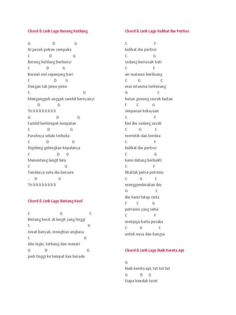 Saat kelas empat SD aku mengikuti lomba menyanyi antar sekolah di RRI Banda Aceh. Burung Kutilang Setelah mahir dengan kunci gitar dengan lagu sebagaimana disebutkan poin nomer 1 lagu Burung Kutilang ciptaan Pak Kasur ini cocok untuk belajar lebih lanjut. Mereka melihat bahwa perubahan cuaca menyebabkan burung kutilang yang memiliki paruh sedikit lebih besar bisa lebih bertahan hidup.