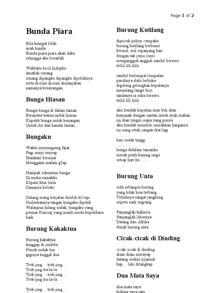 Burung kutilang lirik. Di YOUTUBELagu Anak Ketik. Di pucuk pohon cempaka. Lirik Lagu Anak Burung Kutilang.