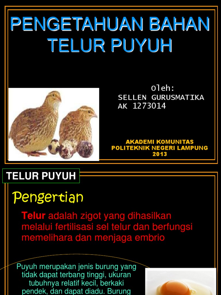 Tujuan penelitian ini untuk menganalisa kualitas bahan bakar biogas yang berasal dari kotoran burung puyuh melalui proses pemurnian biogas yang menggunakan metode adsorbsi tiga lapis. Untuk membakar 164 kalori burung puyuh goreng anda boleh lakukan salah satu daripada aktiviti berikut. Terdapat 458 kalori dalam Daging Burung Puyuh 1 unit.