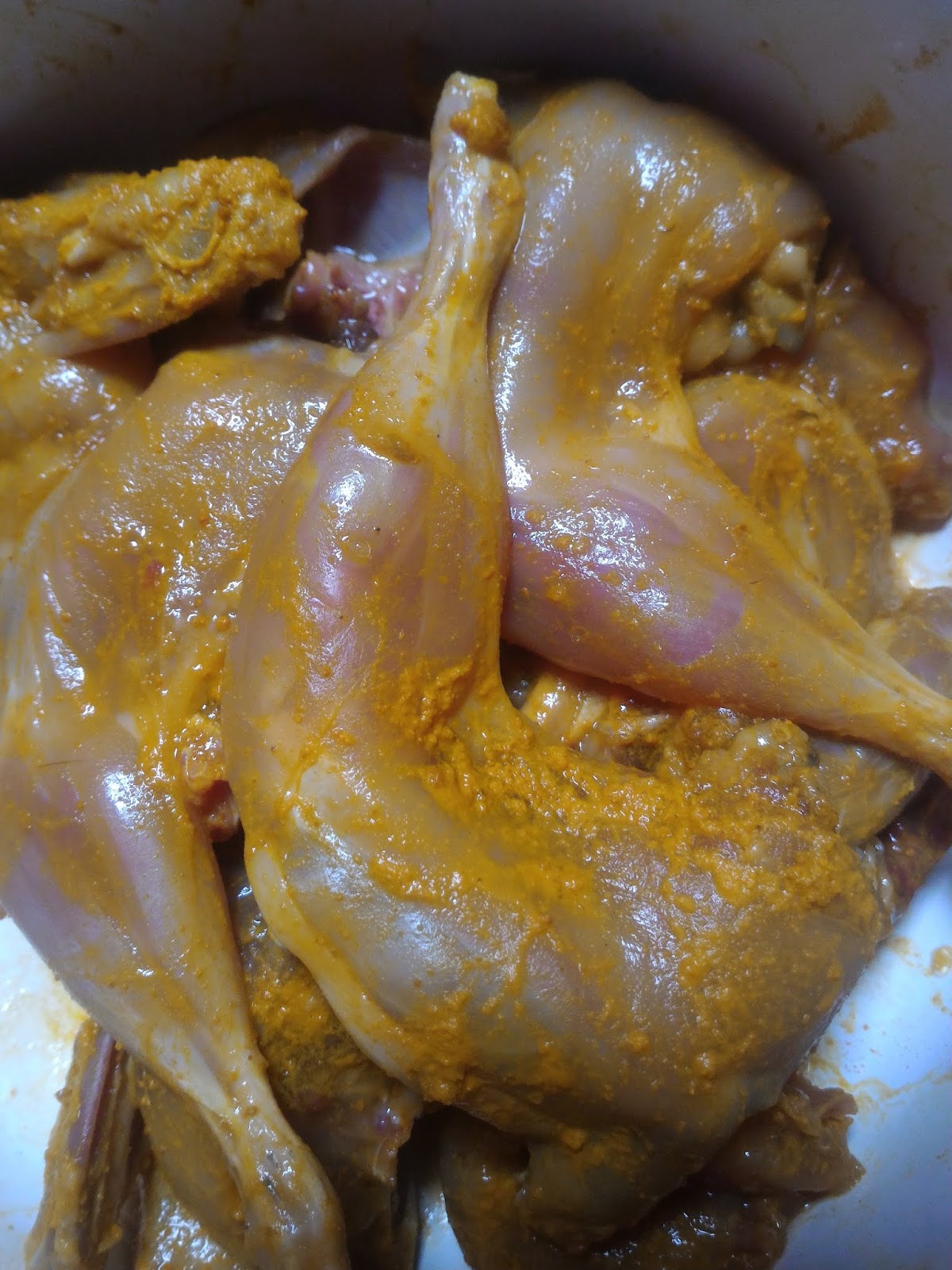 Perasakan dengan garam dan gula secukup rasa. Gaul rata dan ketepikan. Puyuh goreng berempah ni bundo buat untuk makan tengahari tadi.