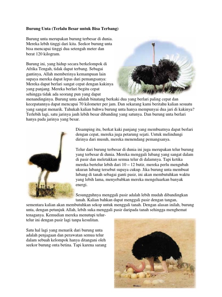 Burung unta lahir. Burung unta memang tidak dapat terbang c. Emu adalah hewan asli Australia. Burung unta adalah burung terbesar yang hidup saat ini dengan berat dewasa antara 200 hingga 300 pon.